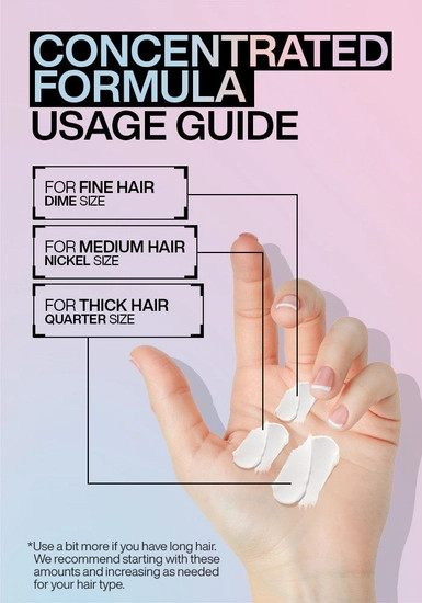 A little goes a long way! This product is thick in consistency and will coat your hair with less product than your average conditioner. We recommend you start with a dime size amount and increase from there based on your hair type.