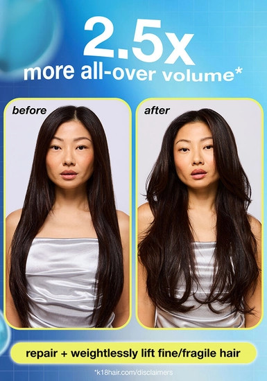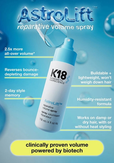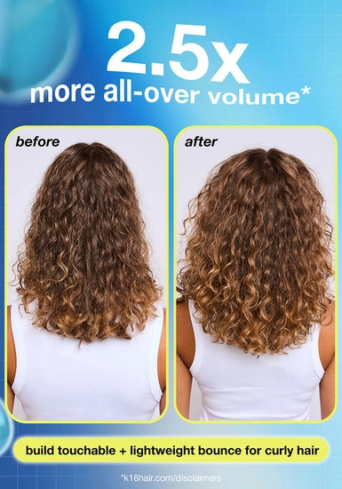A buildable, lightweight volume spray formulated with the K18PEPTIDE™ to reverse damage that can especially impact fine, fragile, and aging hair and a hair fiber volumizing blend to help hair look and feel fuller, for flexible and touchable bounce from roots to ends. Improves volume for up to 2 days.