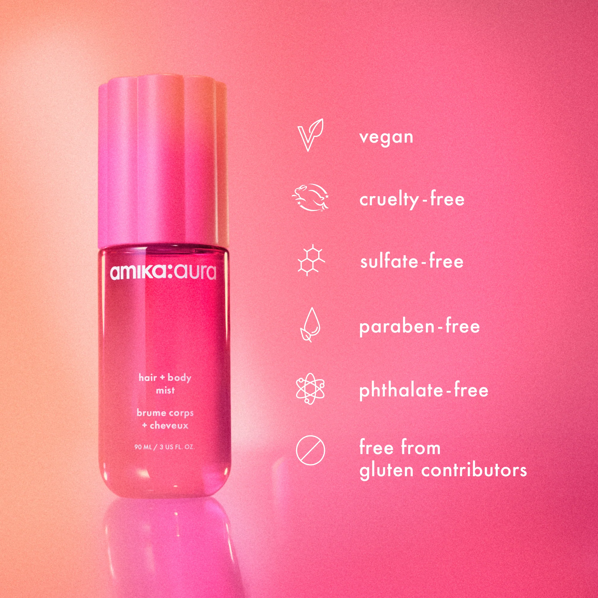 Amika Aura Hair + Body Mist is a hair perfume and body mist designed to uplift and instantly transport you to a brighter place.