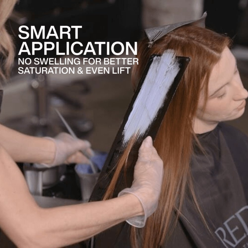 The oil-powered developer system enhances penetration for efficient lightening, achieving up to 7 levels of lift in as little as 25 minutes. Its no-swelling formula ensures better saturation and consistent results, while the creamy, dust-free consistency allows for precision application and easy mixing.