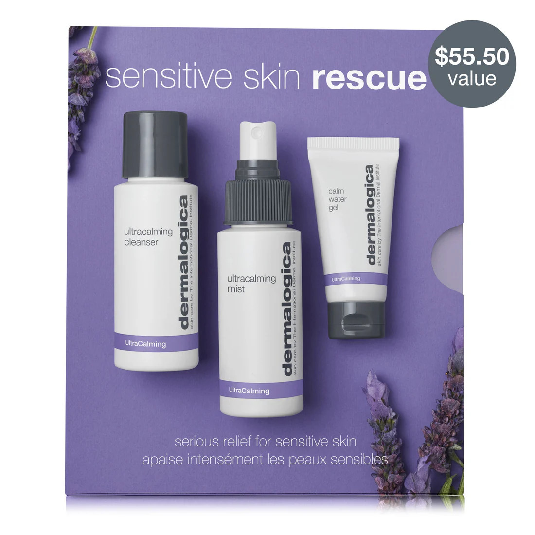 This powerful trio calms, soothes, hydrates and helps defend sensitive skin against future flare-ups. Contains UltraCalming Cleanser 1.7 oz (gentle cleansing cream), UltraCalming Mist 1.7 oz (soothing, cooling spritz) and Calm Water Gel 0.5 oz (weightless water-gel moisturizer).