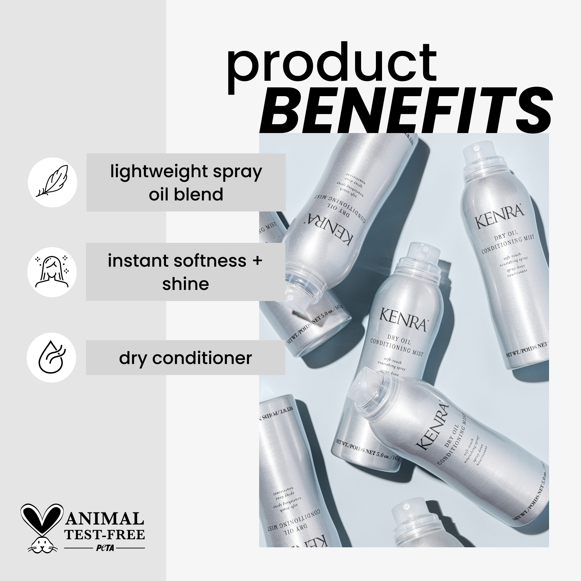 Kenra Dry Oil Conditioning Mist is a soft-touch, lightweight mist designed to hydrate, soften, and add shine to hair.