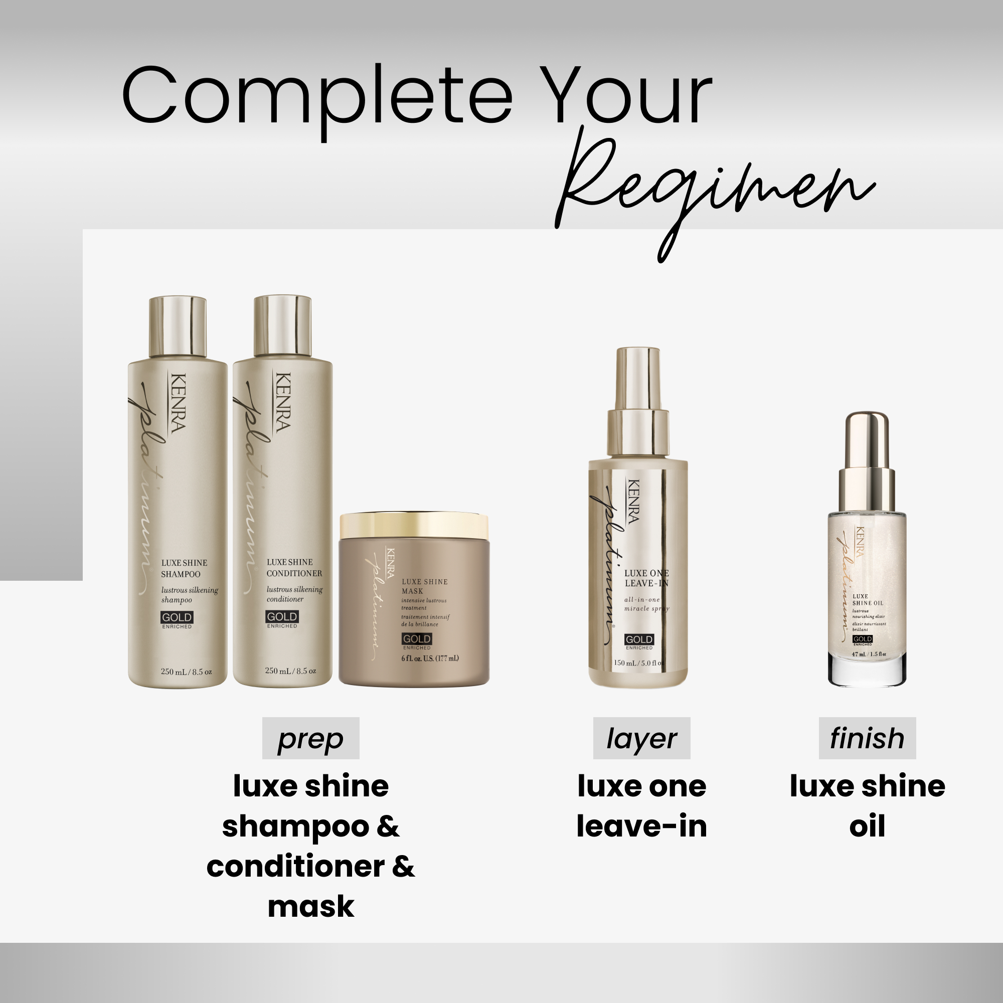 Kenra Platinum Luxe Shine Shampoo is a luxurious silkening professional shampoo designed for all hair types. Its indulgent formula transforms dull, lifeless strands into glamorous, full-bodied, and radiant hair. Formulated without added SLS/SLES sulfates, parabens, or sodium chloride, it provides gentle cleansing while maintaining hair’s natural shine and softness.