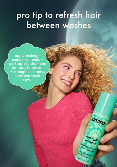 2. Apply Midnight Mender on ends and Perk Up Dry Shampoo (sold separately) on roots to refresh and strengthen strands between wash days.