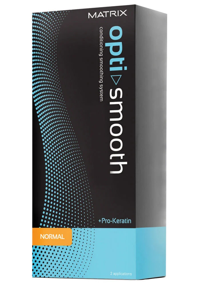 Matrix Opti.Smooth Conditioning Smoothing System is a professional hair smoothing treatment designed to reduce frizz, control volume, and improve overall hair condition while maintaining strength and flexibility. Formulated with an advanced Pro-Keratin Complex, this system helps reinforce the hair fiber and protect against breakage, delivering up to 25% more conditioning during the service.