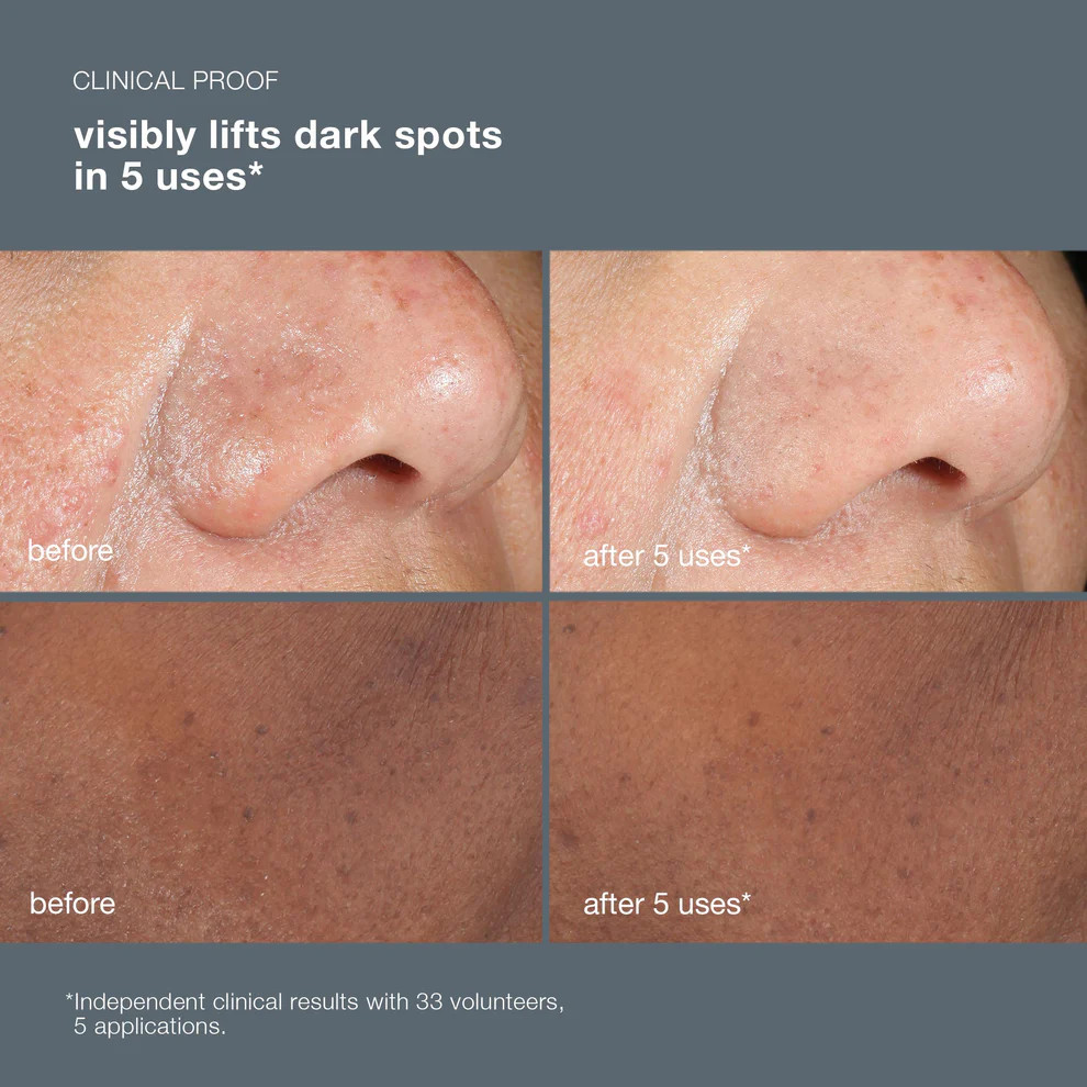 Visibly lift dark spots in just 5 uses: this at-home peel helps visibly lift surface hyperpigmentation – including UV-induced dark spots, post-blemish marks, and melasma for a wide range of skin tones.