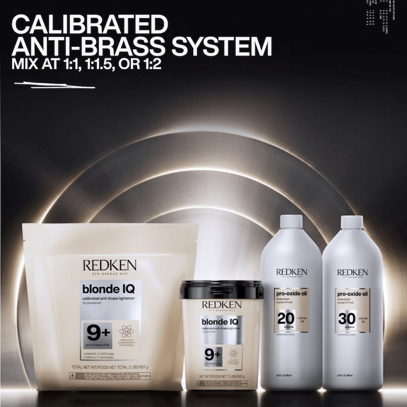 Pro-Oxide™ Oil Developer 30 Volume (9%) is an oil-powered developer specifically calibrated to work exclusively with BLONDE IQ™ 9+ Calibrated Anti-Brass Lightener. Designed to enhance both lift and neutralization performance, this developer helps deliver powerful, clean lightening results across all hair types and textures.