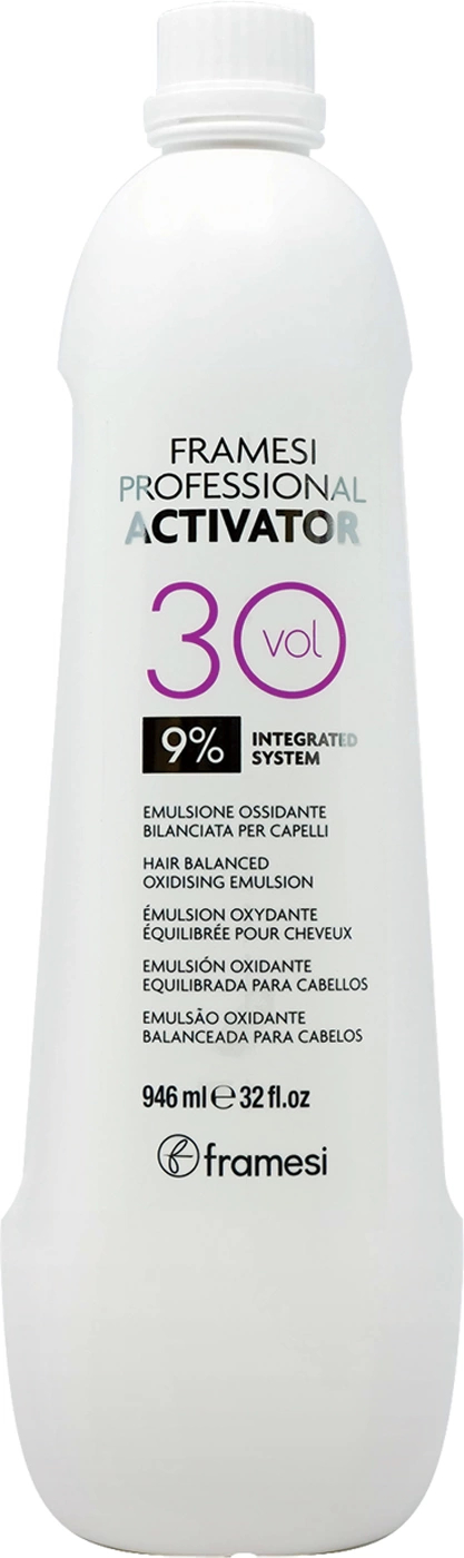 Framesi Professional Activator is a liquid cream activator with an Integrated System of ingredients and technology for perfect condition, shine and color penetration deeper into the cortex.