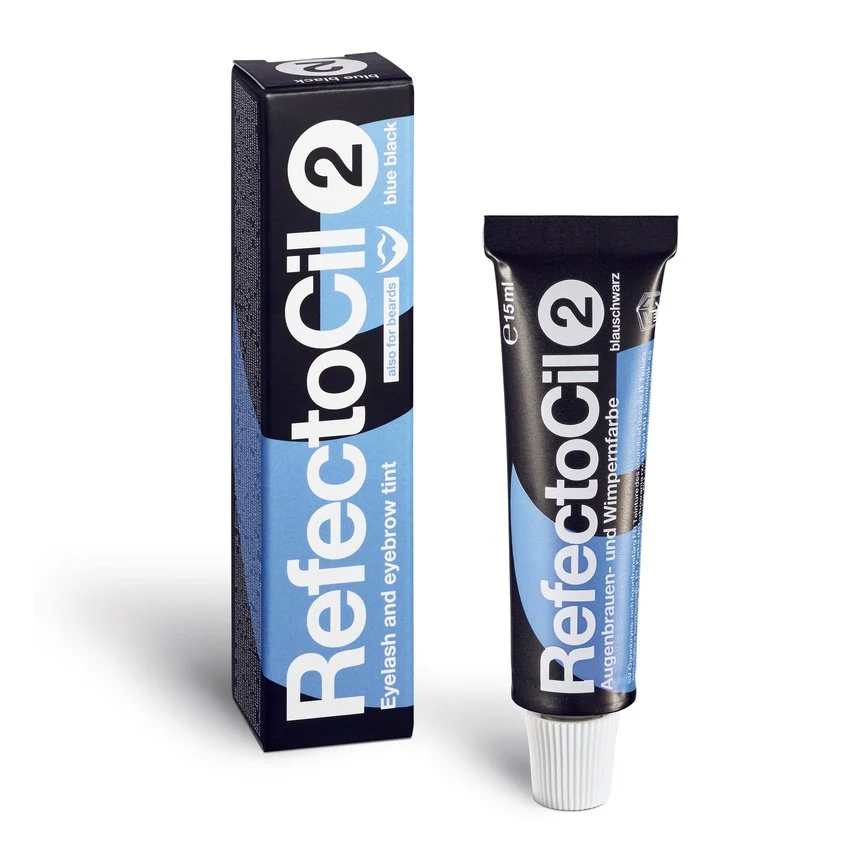 For particularly expressive eyes! Refectocil Eyelash and eyebrow tint No. 2 Blue Black is a black colour with a blue lustre providing additional colour depth to the tinting result. Refectocil No. 2 Blue Black tints each hair blue black and makes the eyelashes look clearly longer and more voluminous. The shade Refectocil No. 2 Blue Black is suitable for clients who wish somewhat more than pure black; it goes very well with certain skin types and when using blue eye make-up. With this colour you can enhance brown or black eyelashes and eyebrows or tint light or white eyelashes and eyebrows with long-lasting blue black. Clients with dyed blue black hair can match their eyebrows with their hair colour using Refectocil No. 2 Blue Black. Content: 15 ml. Sufficient for approximately 30 applications. Please read the instructions for use.