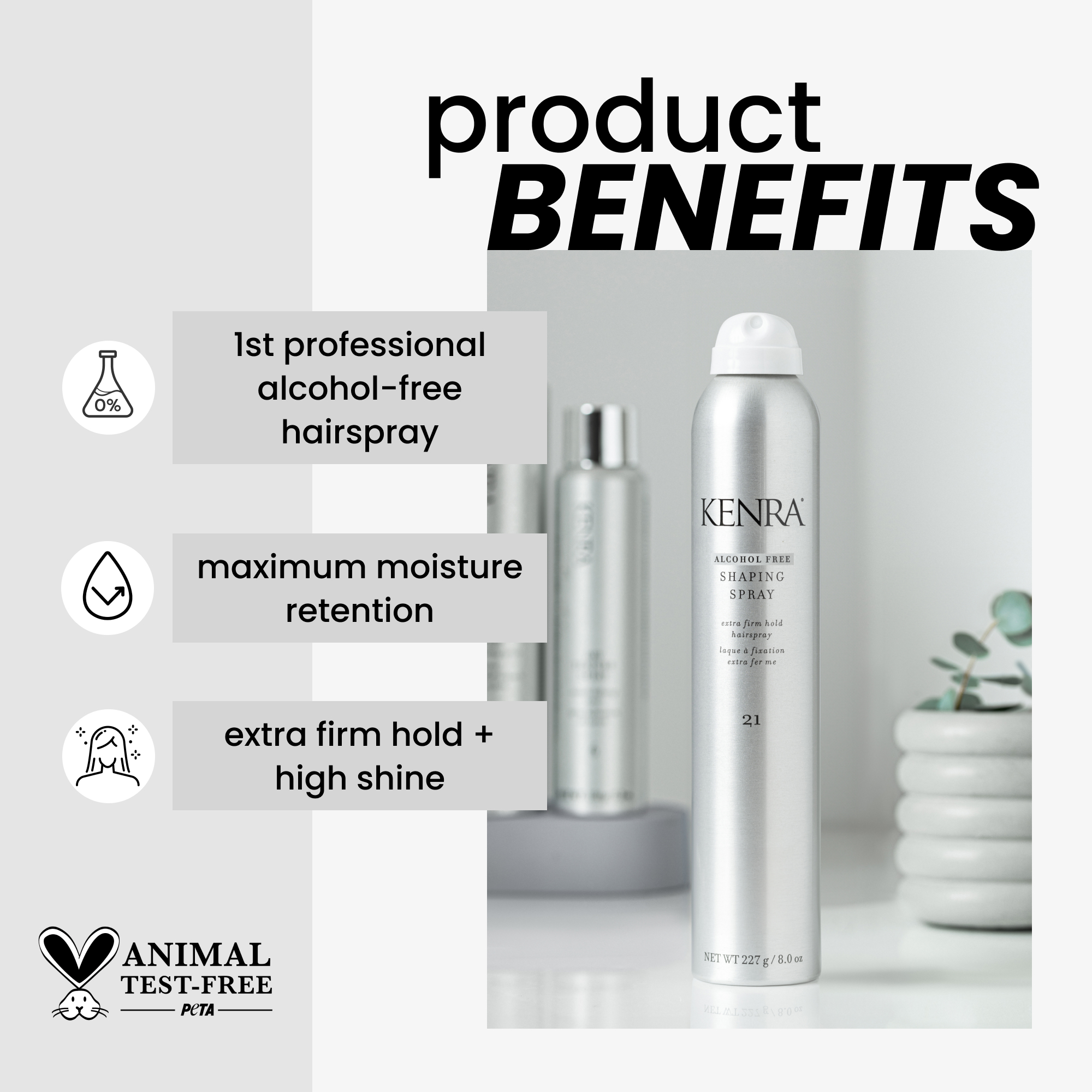 Kenra Alcohol-Free Shaping Spray is a professional-grade hairspray designed to deliver extra-firm hold with high shine, without drying out the hair.