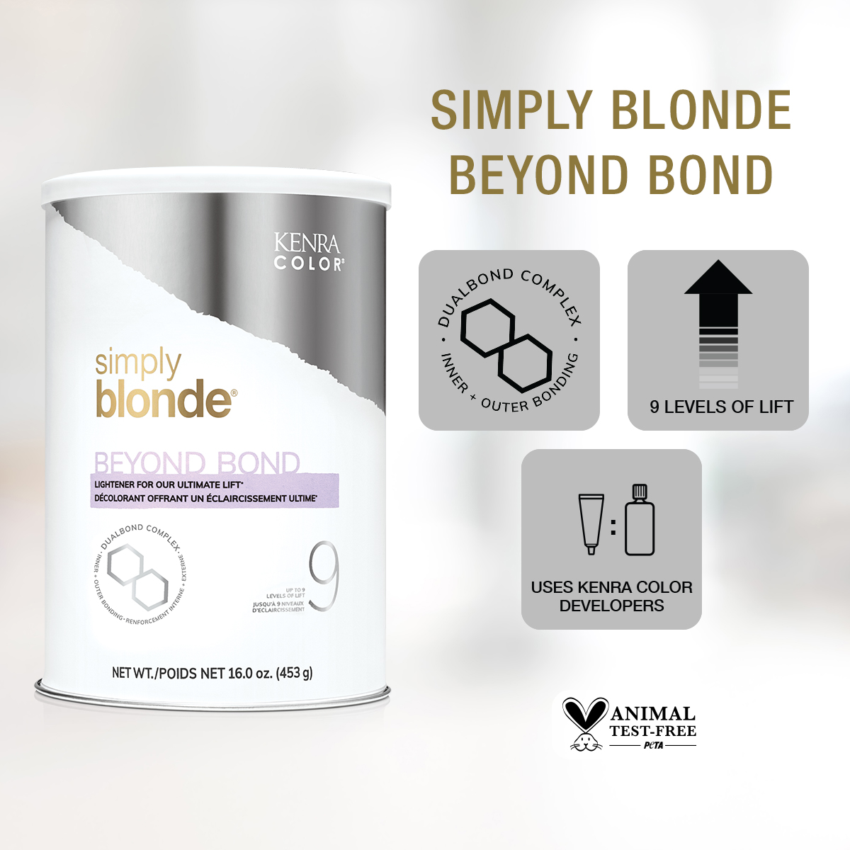 Kenra Color Simply Blonde Beyond Bond Lightener is a transformative lightener designed to lift hair up to 9 levels while protecting its integrity. Formulated with Kenra’s DualBond Complex, it strengthens hair during lightening services, making it ideal for complex blonding techniques. Achieve bright, consistent, and healthy-looking blonde results you can trust.