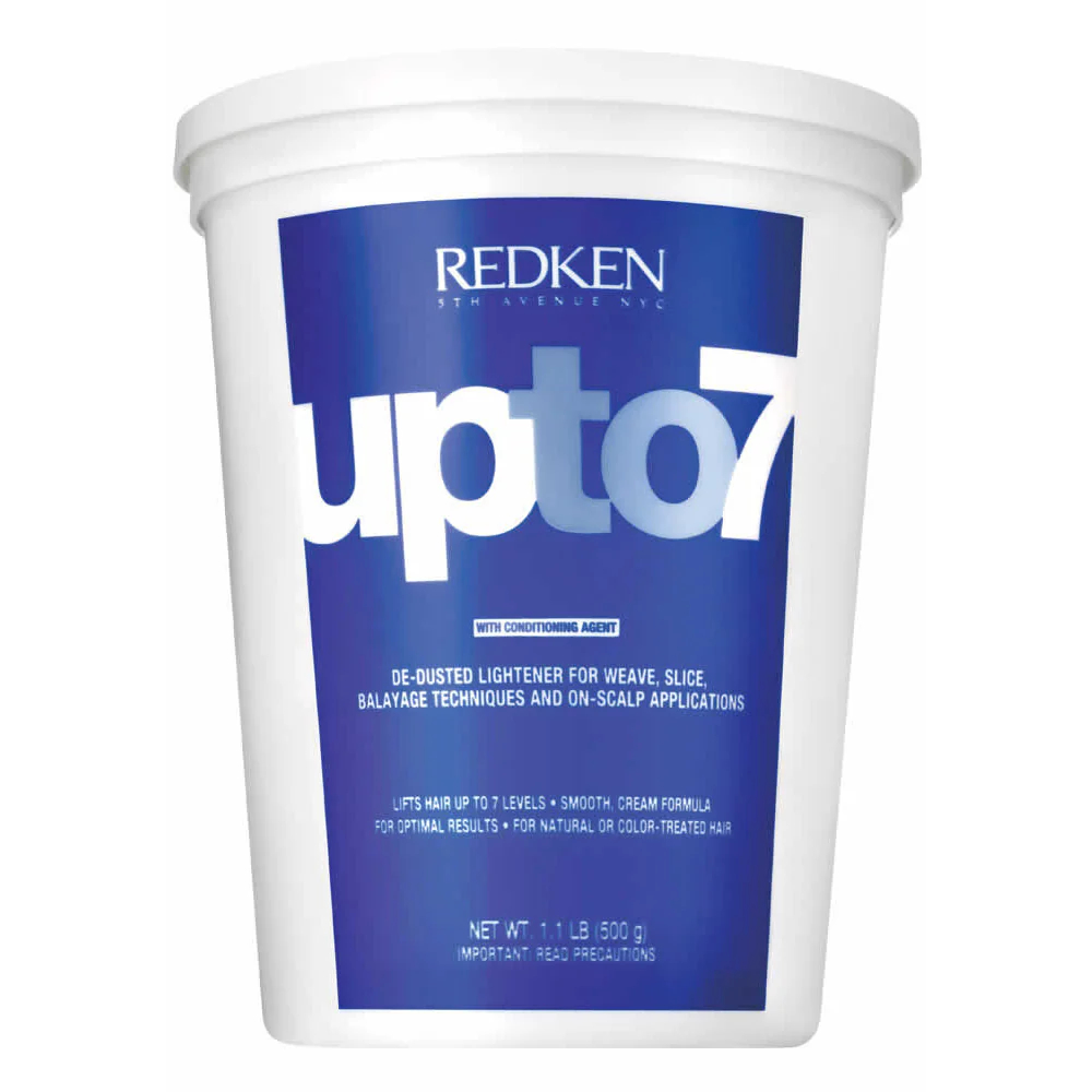Redken Up to 7 De-Dusted Lightener contains conditioning agents. Lifes hair up to 7 levels. Smooth, cream formula for optimal results. For natural or color-treated hair. Go blonde...blonder...blondest! New Up to 7 De-dusted Lightener lights the way to 7 levels of lift with speed, ease and brilliance. The creamy consistency allows you to work with precision and stays moist for even the most intricate of decolorizing techniques - it can be used for both on- and off-scalp applications including balayage, weaving, and slicing. Formulated for use with Redken's Pro-Oxide Cream Developers, the two-component system is quick and easy to apply.