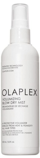 The Volumizing Blow Dry Mist, infused with patented OLAPLEX Bond Building Technology™, is a reparative blow-dry mist that provides lasting body and bounce and also protects hair from heat, leaving it visibly soft, shiny, and healthy.
