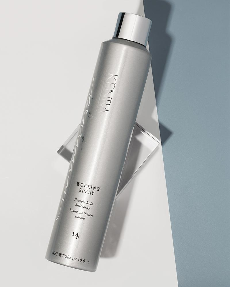 Kenra Platinum Working Spray 14 is a flexible hold hairspray designed to provide ultimate control without stiffness or stickiness. Its lightweight formula delivers pliable hold for detailing, allowing hair to be restyled while maintaining frizz-free shine. Ideal for creating volume, texture, and touchable styles with natural movement.